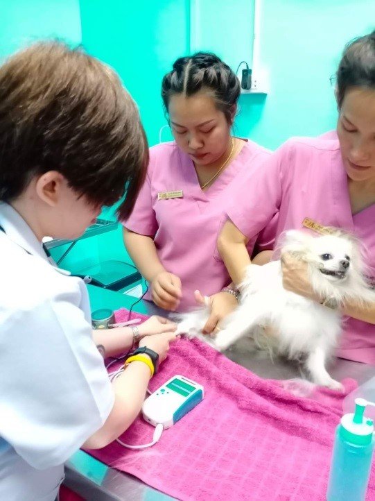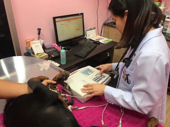 ที่โรงพยาบาลสัตว์เมืองทอง มีคุณหมอเฉพาะทางคลินิกโรคหัวใจและระบบทางเดินหายใจเข้าตรวจตามช่วงเวลาที่นัดในวันอาทิตย์ เรามีเครื่องมือครบครัน อาทิ เครื่องเอกซเรย์ดิจิตอล (x-ray digital) เครื่องอัลตราซาวน์หัวใจ (echocardiogram) เครื่องตรวจคลื่นไฟฟ้าหัวใจ (electrocardiogram : ECG หรือ EKG)เครื่องวัดความดันโลหิต (vascular doppler detector) เพื่อช่วยวินิจฉัยโรคหัวใจและหลอดเลือดได้อย่างมีประสิทธิภาพ เพื่อสุขภาพ และคุณภาพชีวิตที่ดี ให้เพื่อนสี่ขาสูงวัยอยู่กับเราไปนานๆ พาเด็กๆมาตรวจสุขภาพหัวใจกับ สพ.ญ. วิภาดา วีระกิจพานิช (หมอเอ้ก) กันนะคะ